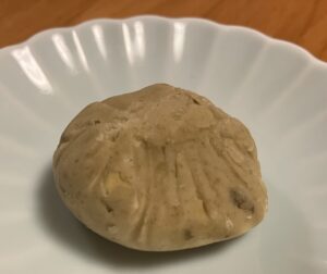 あのお正月の黄色いもったりした「きんとん」とは違い、栗を茶巾絞りにした、素朴な秋だけの味覚です。